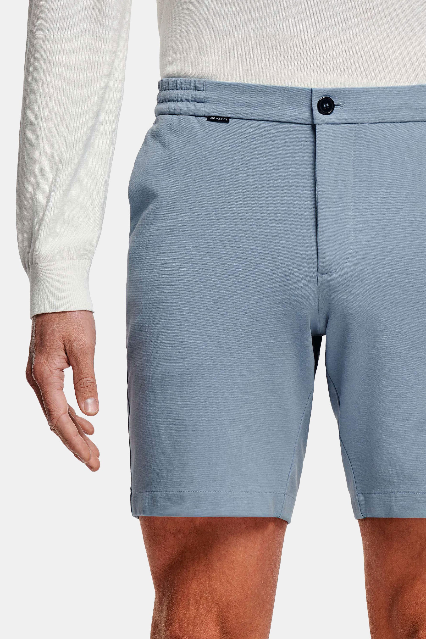 Ya están aquí Los Antarctics easies: Los shorts elásticos de punto para hombre de color azul grisáceo claro. La versión shorts de Los Easies, nuestros pantalones de chándal perfectos, es realmente el summum de la comodidad.